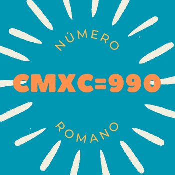 O número romano CMXC corresponde ao número 990 (como calcular). Veja também: Numeração Romana Completa e Números Romanos Infantil.